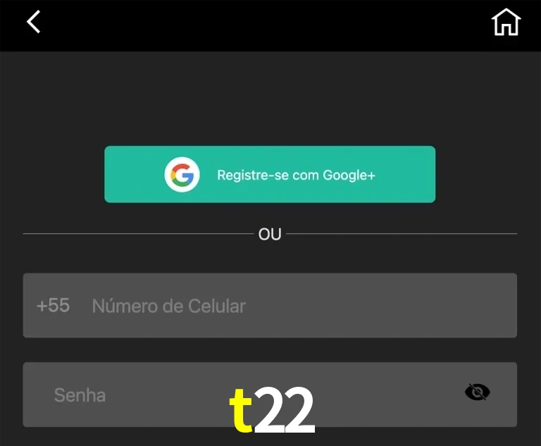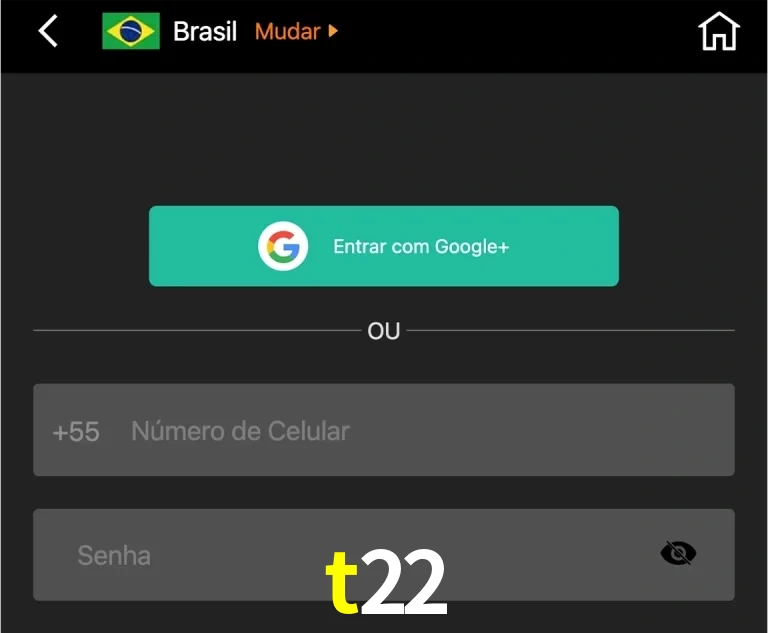 Você também pode se registrar no site do t22 usando seu perfil do Google. Isso permite que você não precise digitar seu telefone e senha, o que acelera o processo de registro.